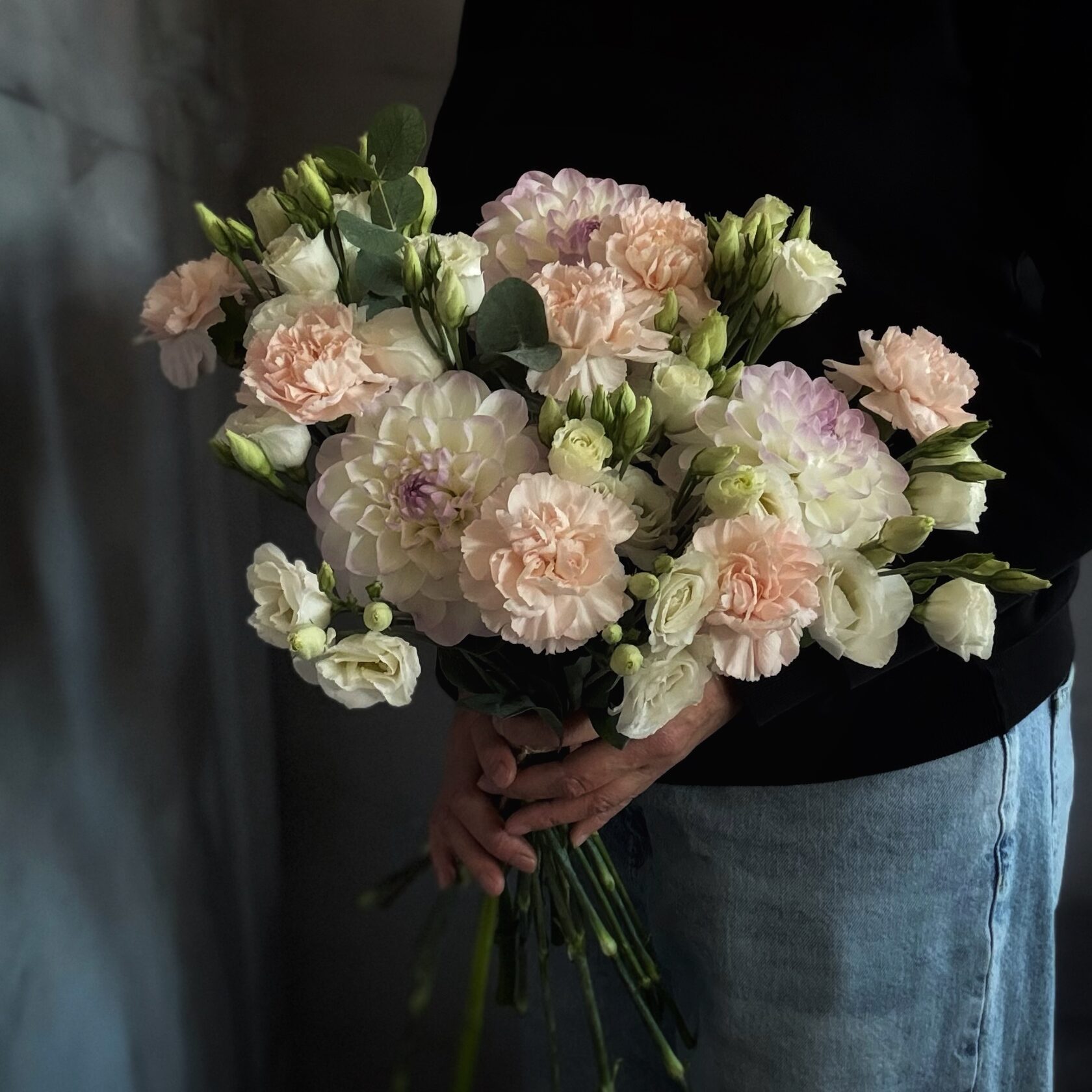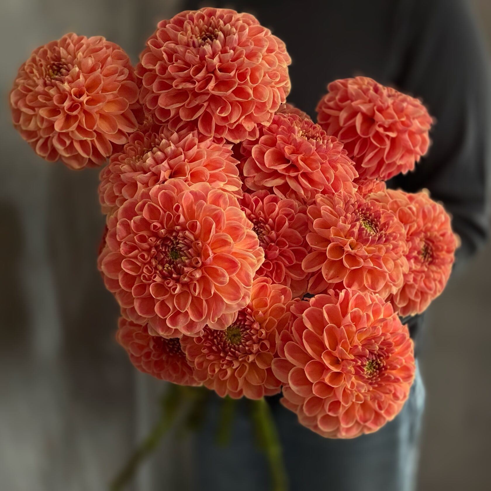 🌸 Георгины в букете — это маленький фейерверк осенних красок. Пышные, словно кружевные юбки, они добавляют композиции объём, драму и тёплый характер. Их бархатистые лепестки играют оттенками от карамельного до винно-бордового, делая каждый кадр насыщенным и уютным.